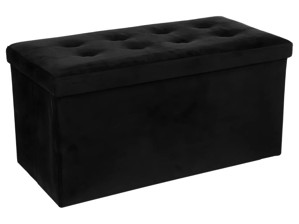 2 en 1 Pouf pliant double et coffre de rangement Velours noir 76 x H 38 cm – Dimensions : L. 76 x l. 38 x H. 38 cm –
