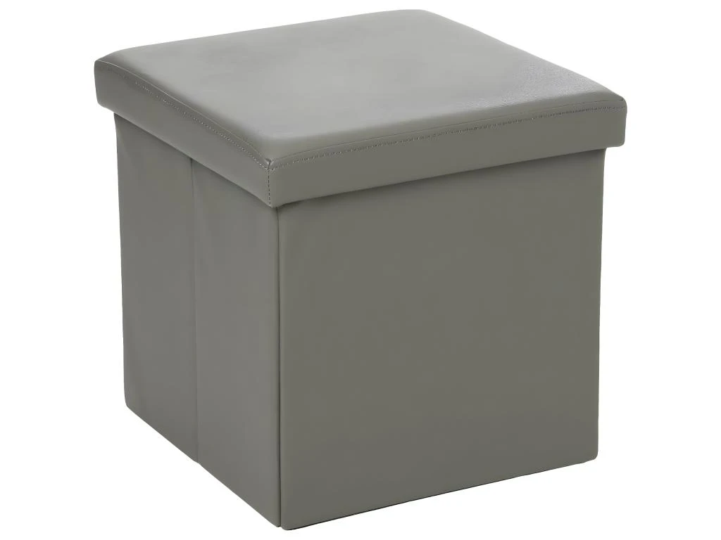 2 en 1 Pouf pliant et coffre de rangement Vinyle Gris 38 x H 37.5 cm – Dimensions : L. 38 x l. 38 x H. 37,5 cm –