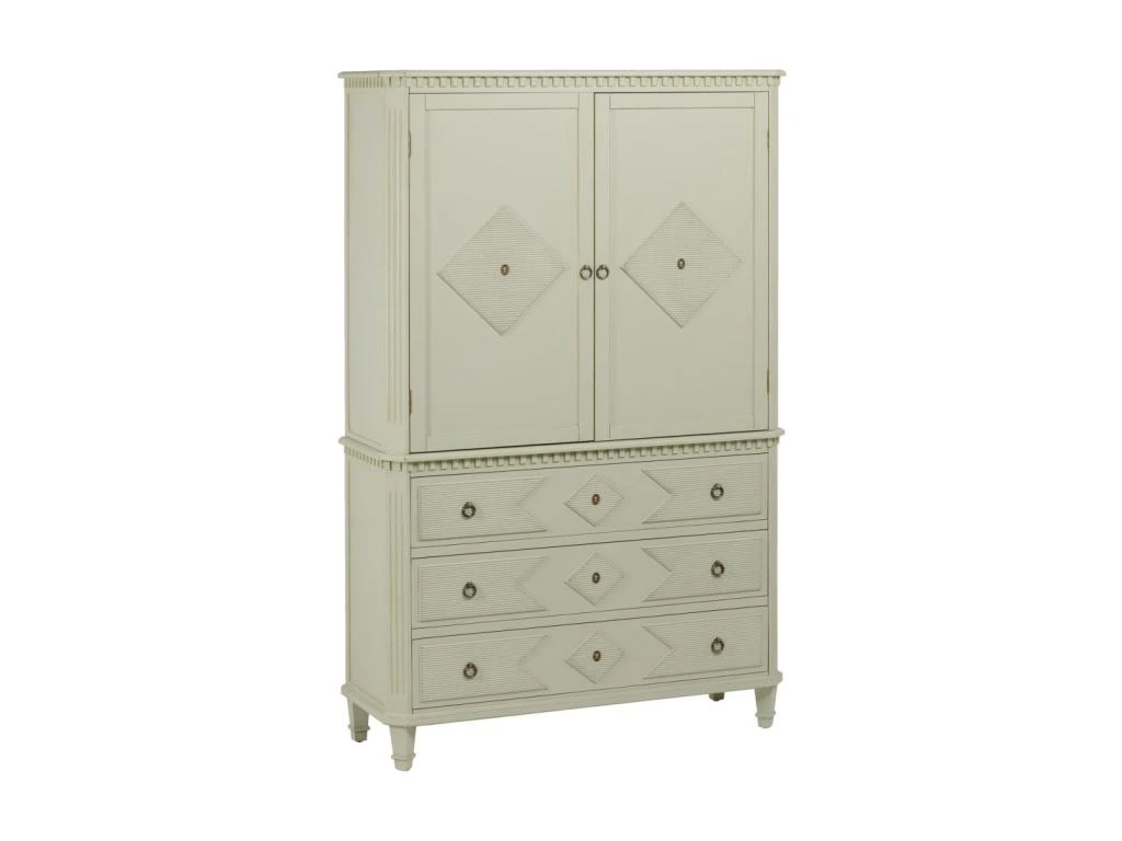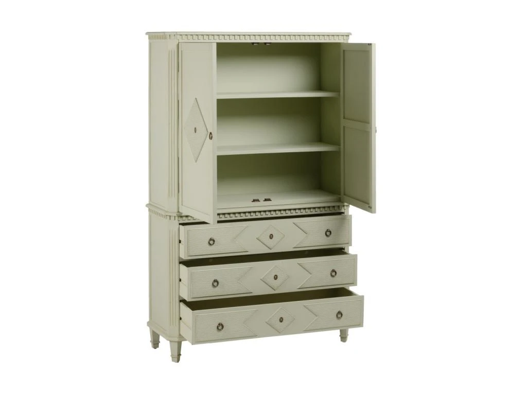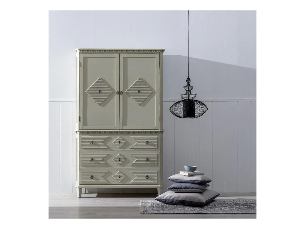 Potentiel décoratif exceptionnel pour cette armoire 2 portes 3 tiroirs très nettement inspirée des meubles de tradition.