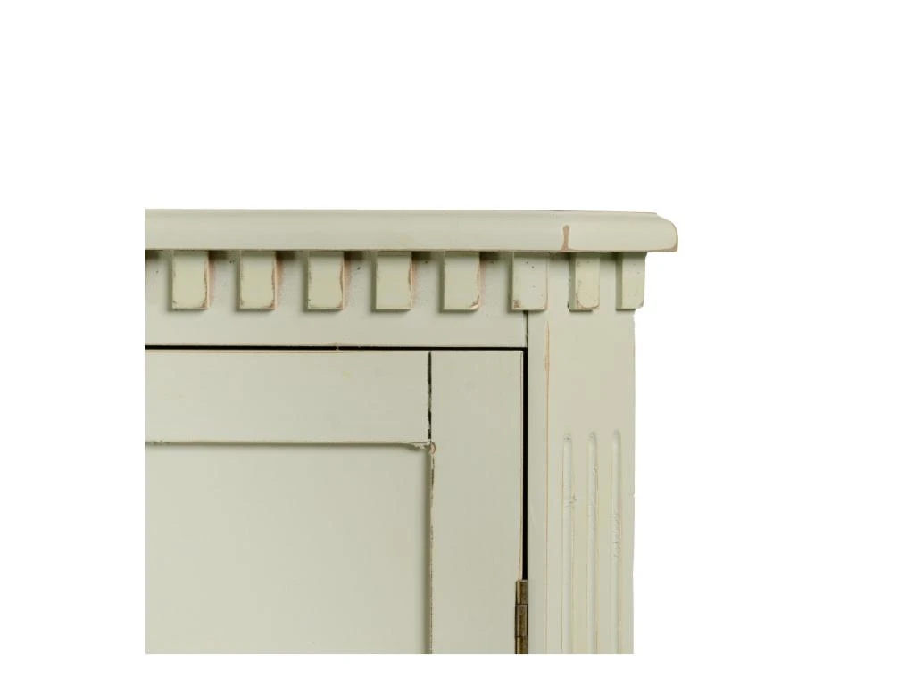Sculptures, gorges, créneaux et pans coupés sont mis en volume par une teinte vert sauge qui est magnifiée par une patine copie d’ancien au rendu plus vrai que nature.