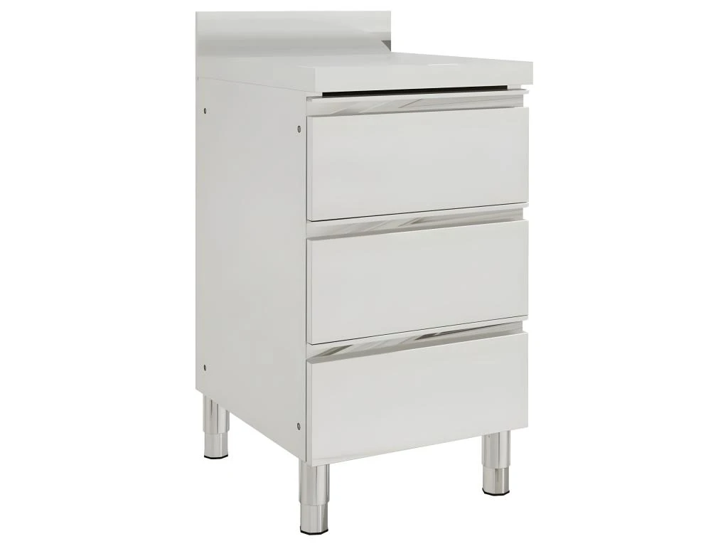 Trois tiroirs offrent suffisamment d’espace de rangement pour les articles de nettoyage et les accessoires.