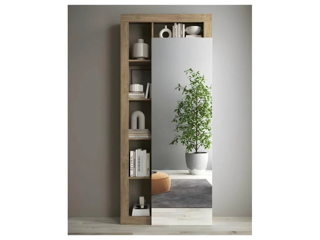 La grande porte miroir apportera de la luminosité et agrandira visuellement votre entrée, son ouverture libère l’accès à une penderie et à 3 surfaces de pose.