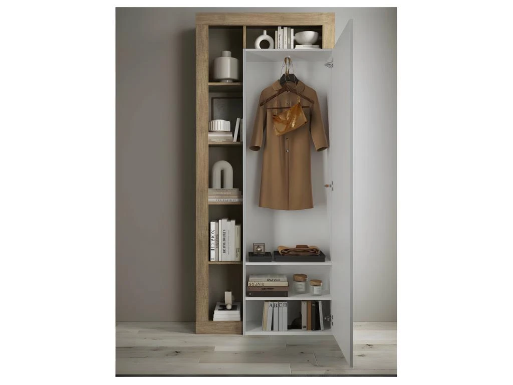Design contemporain et rendu rassurant de la finition Chêne naturel pour cette armoire de vestiaire d’entrée à la très belle qualité perçue.