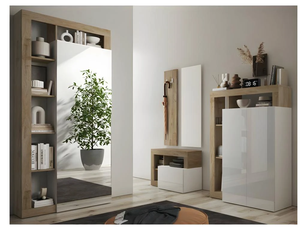 Idéal pour prendre place dans une entrée ce meuble de rangement vous permettra de strucutrer votre entrée tout en vous permettant de mettre en valeur quelques objets de déco et de ranger manteaux et vestes.