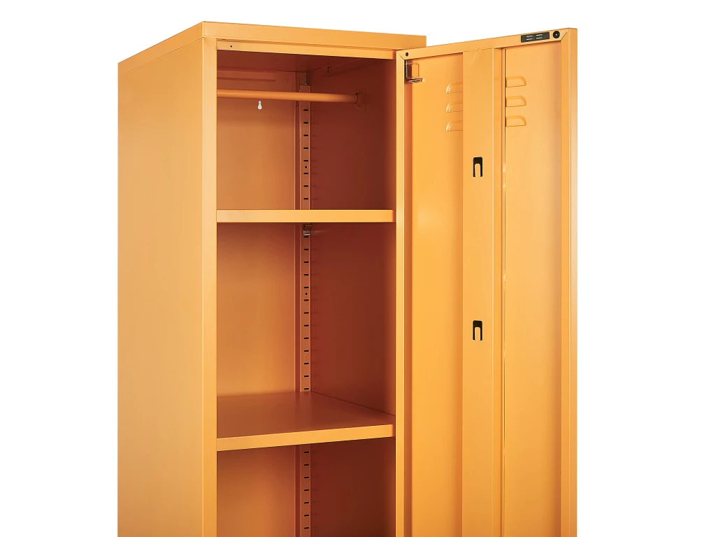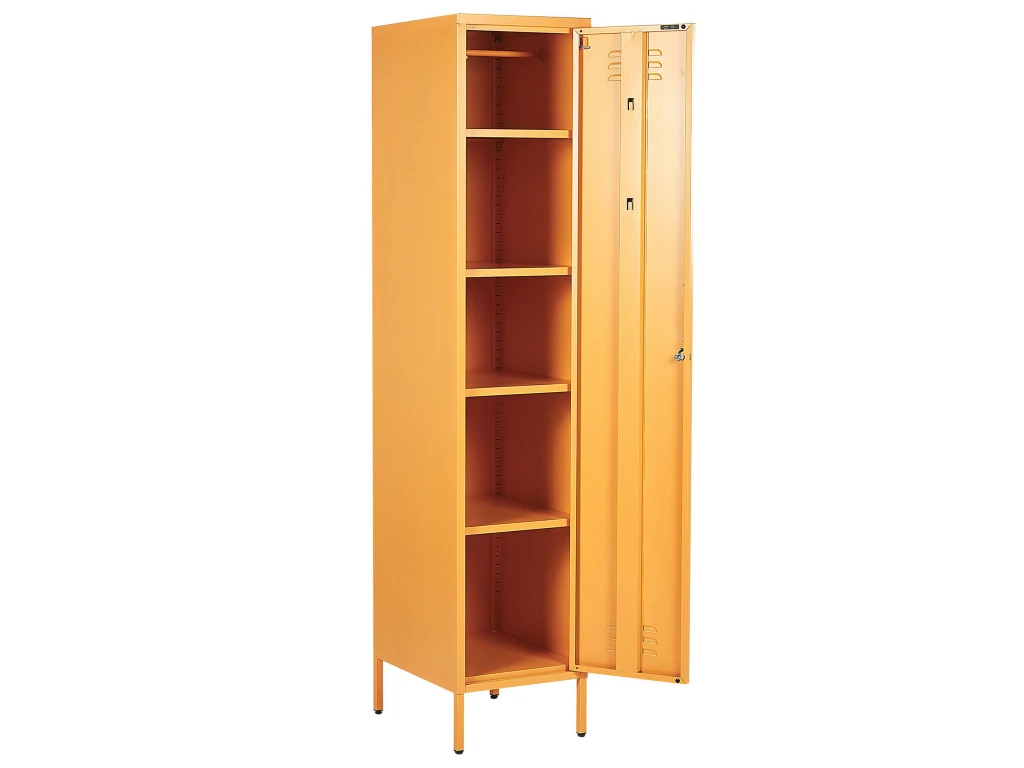 Caractéristiques clés: Crochets pratiques sur la porte pour un rangement supplémentaire, Étagères réglables, Fermeture à clé, Idéal pour un espace de travail, Patins pour le pieds assurent la protection contre les rayures, Les fentes de ventilation permettent le renouvellement de l’air