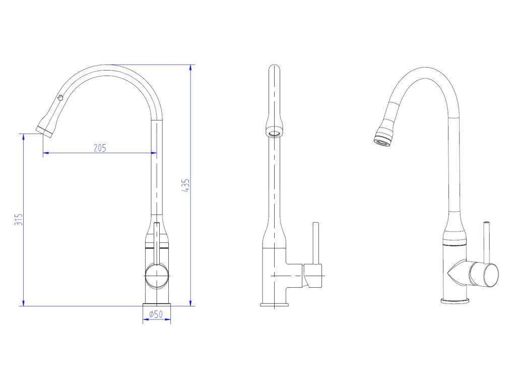 Vérifiez que la longueur du bec est compatible avec votre évier (voir dessin technique)