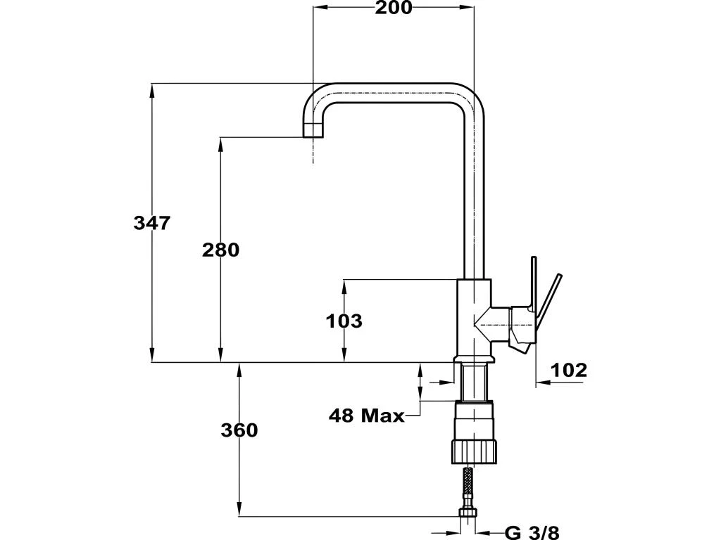 Vérifiez que la longueur du bec est compatible avec votre évier (voir dessin technique)
