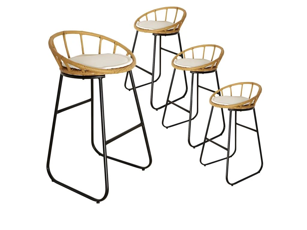 Lot de 4 Tabourets de Bar Assise Tressée de la gamme Bandung.
