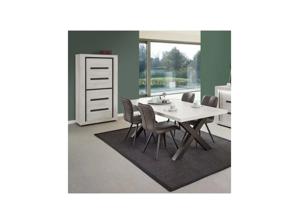 Le design moderne de ce meuble de rangement 2 portes met en valeur le revêtement Chêne teinte Craie et les détails contrastés qui rythment sa façade originale.