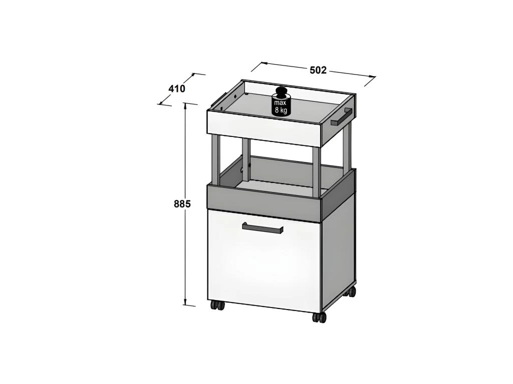 - Poids supporté : Plateau inférieur 10 kg / Plateau supérieur 8 kg.