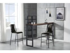 HARLEM – Chaises De Bar Industrielle Microfibre Vintage Marron Foncé Pieds Métal Noir (x2)