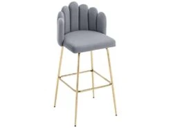 Lot De 2 Tabourets De Bar – Dossier En Forme De Pétale – Pieds Dorés – Velours – Gris
