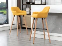 Lot De 2 Tabourets De Bar En Tissu Et Pieds Bois De Hêtre – Jaune – ELEANA
