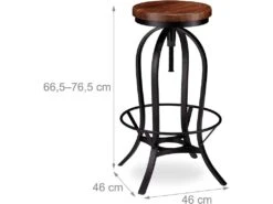 Tabouret De Bar Industriel Chaise Ronde Hauteur Réglable Jusqu à 65 Cm Noir Marron Fer Bois 13_0002768
