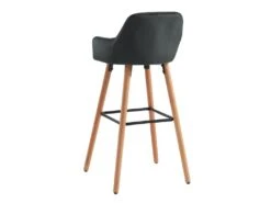 Tabouret De Bar En Velours Et Pieds Bois De Hêtre – Noir – ELEANA