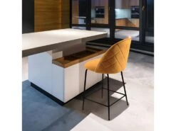Lot De 2 Chaises De Bar En Velours Jaune Piètement Métal Noir – FARA