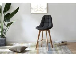 OWEN – Chaise De Bar Scandinave Tissu Anthracite Pied Hêtre (x2)