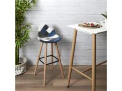 ROKIA – Tabouret De Bar Simili Noir Et Contreplaqué Marron