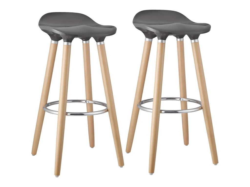 Lot de 2 Tabourets de Bar Gris et Pieds Aspect Bois de la gamme Bibenne.