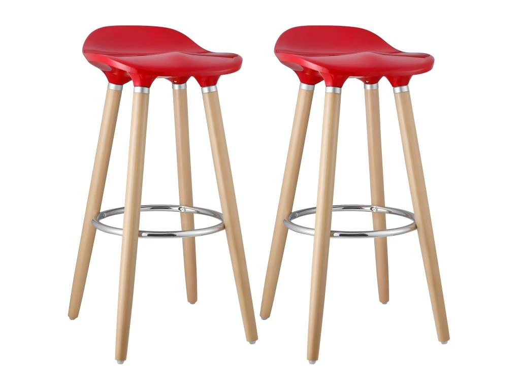 Lot de 2 Tabourets de Bar Rouge et Pieds Aspect Bois de la gamme Bibenne.