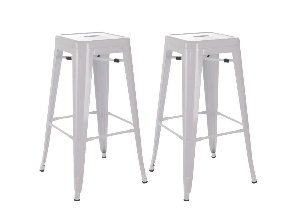 Lot de 2 Tabourets Hauts Métalliques Blancs H76.5cm Bobby.