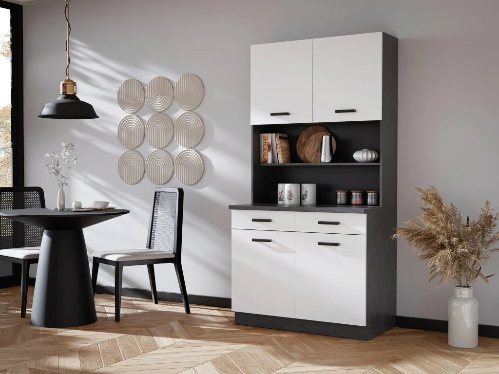 Le buffet de cuisine MADULIA est constitué de nombreux espaces de rangement : tiroirs, portes, niches. Il s’intégrera facilement dans votre intérieur grâce à son allure sobre et élégante. Alors n’attendez plus pour réorganiser votre cuisine !