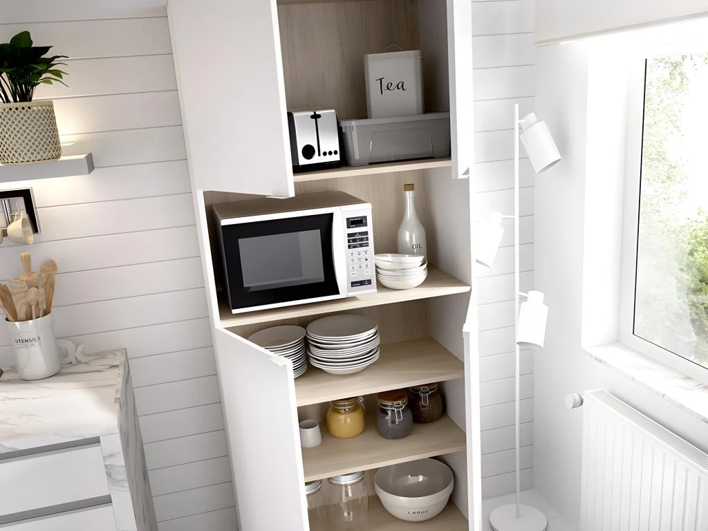 La collection WAJDI vous offre des buffets de cuisine à l’allure scandinave pour une déco à la fois sobre et pratique. En effet elle comporte de nombreux rangements : tiroirs, portes ou niches … Vos ustensiles de cuisine et votre vaisselle pourront être convenablement rangés.