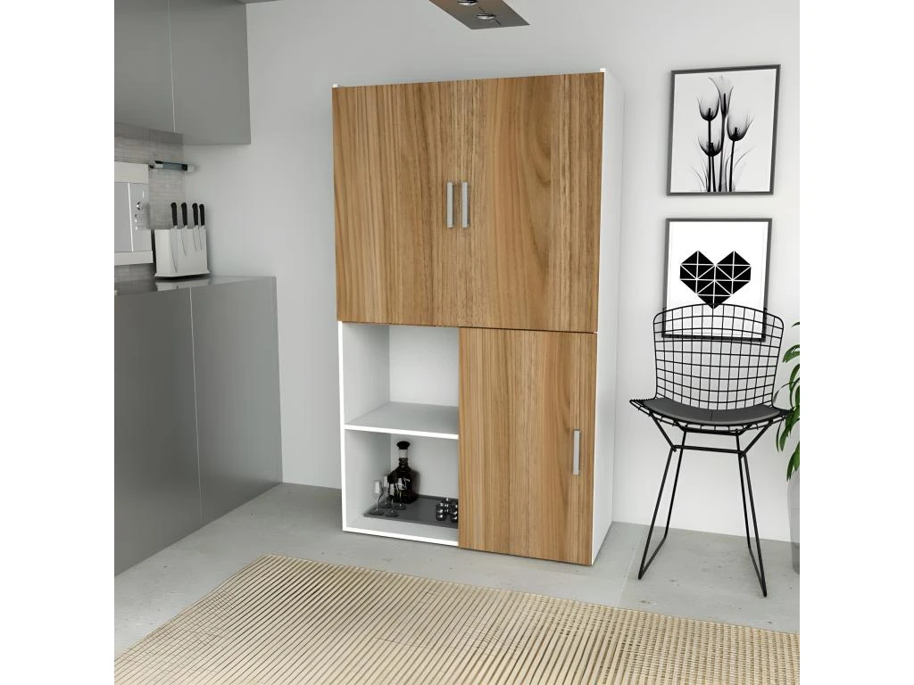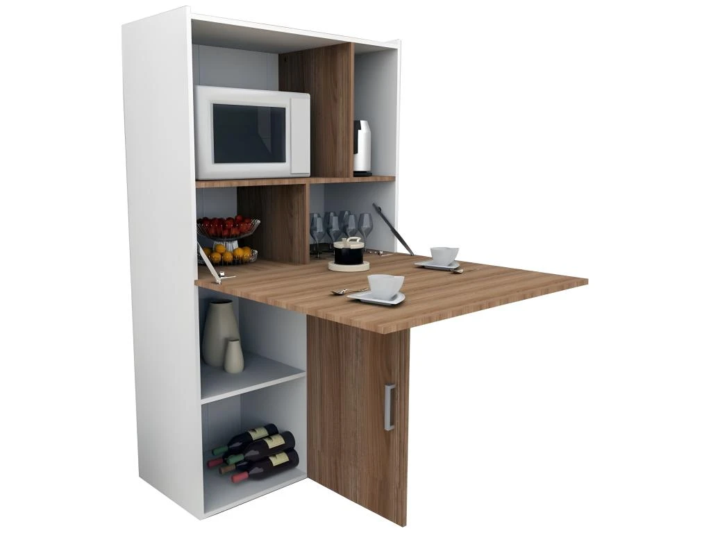 Buffet de Cuisine avec Table intégrée. Coloris Blanc et Imitation Châtaignier.