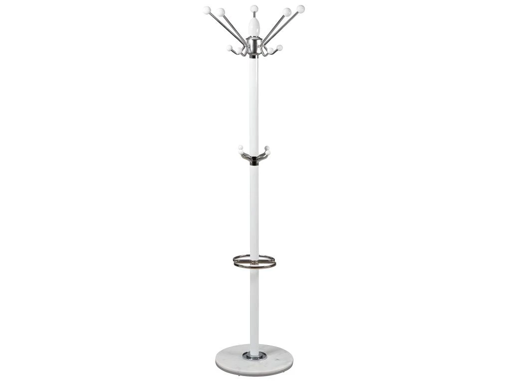 Socle en marbre, structure chromée. Fût en aniégré laqué et patères en fer chromé. Porte parapluie en plastique