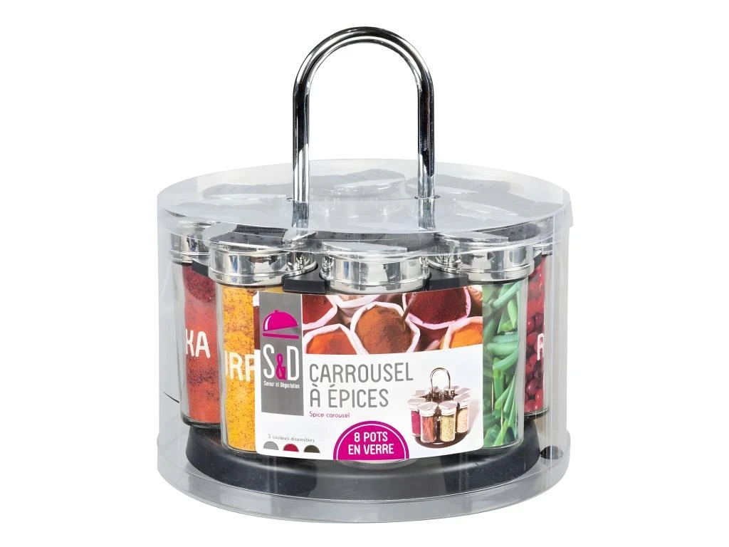 Informations complémentaires : 8 pots avec couvercle système de fermeture à double clapets Epices non fournies