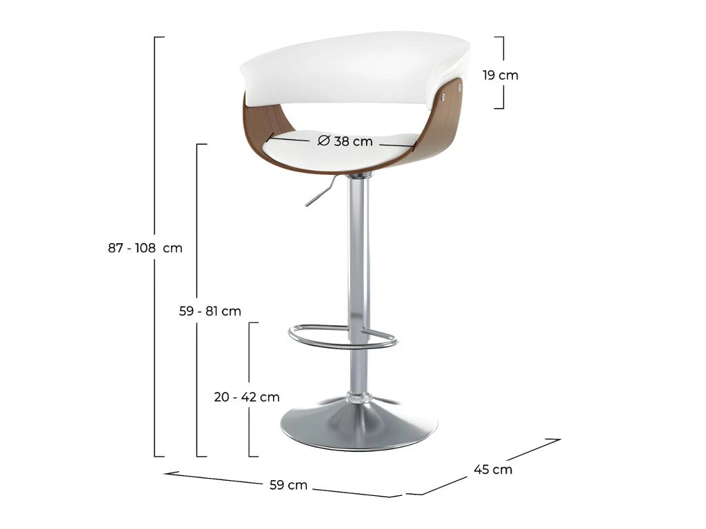 – Hauteur d’assise : 59 cm – 81 cm
