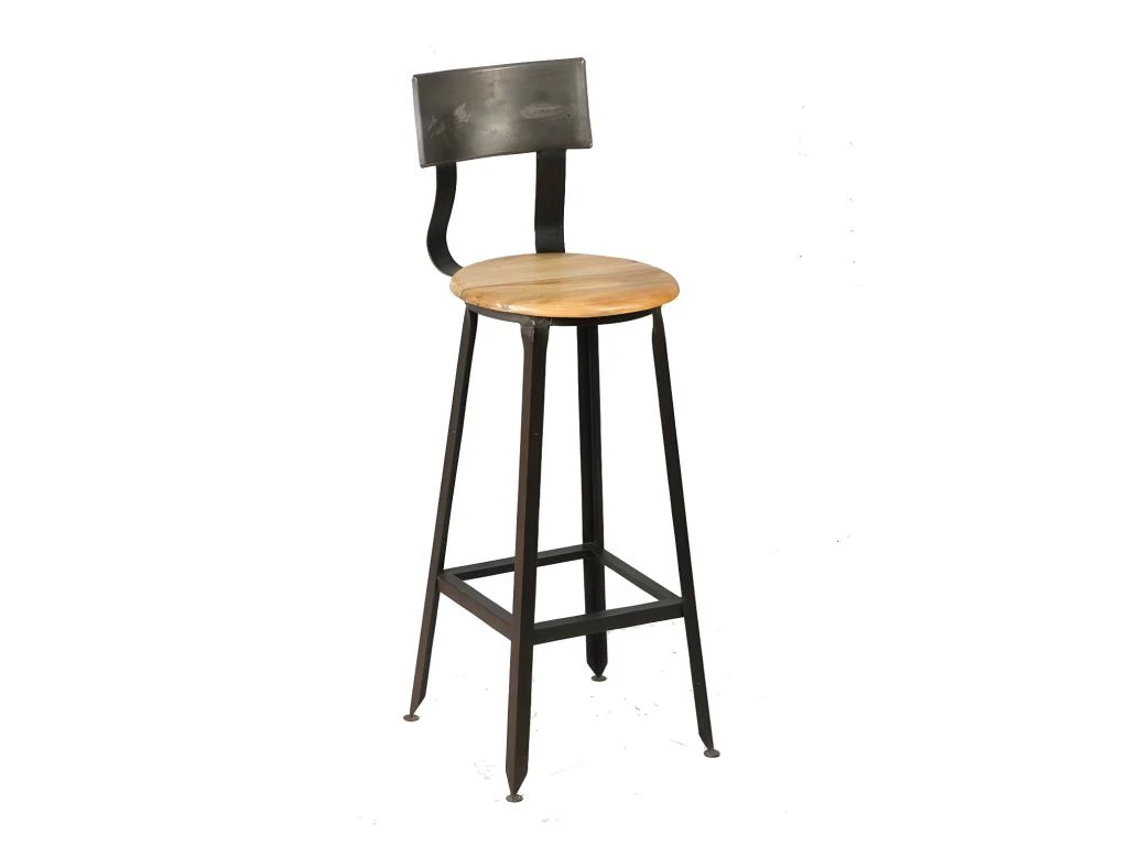 La très solide structure en acier se marie au bois massif pour donner un look sans concession à cette chaise de bar étonnante.