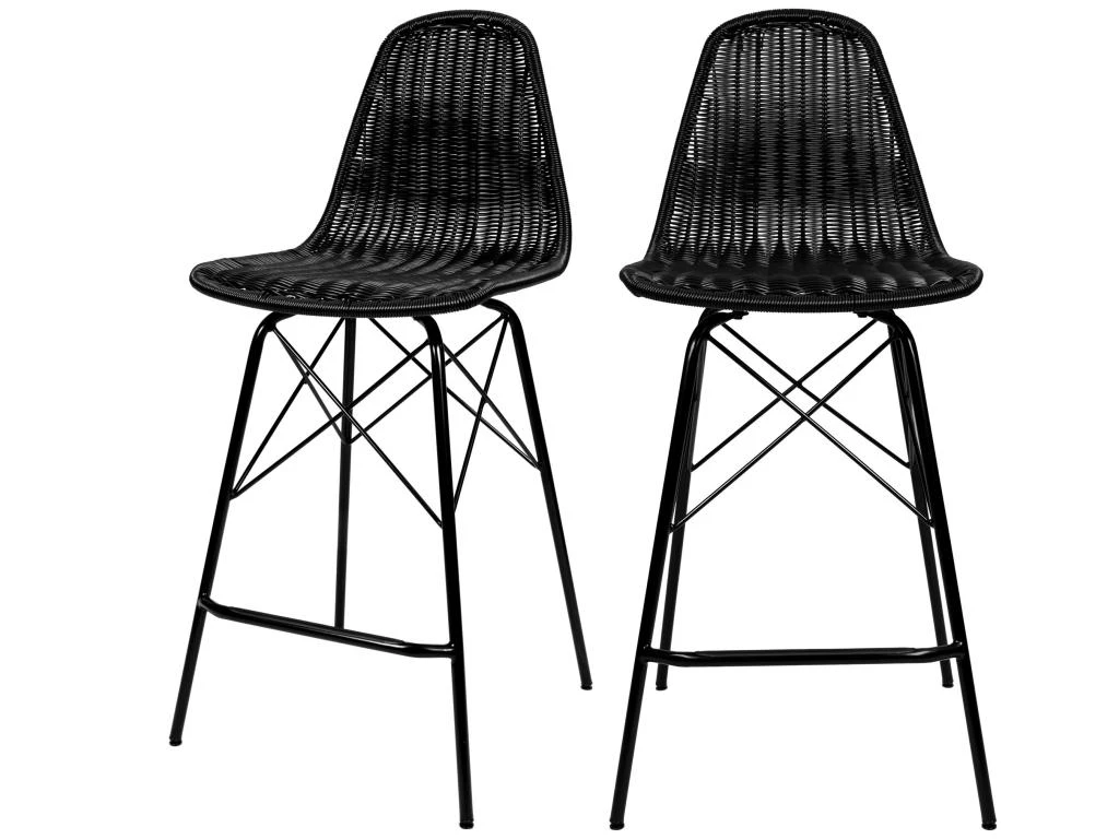 Recevez vos invités sur les chaises de bar Tiptur en résine tressée noires (lot de 2) !