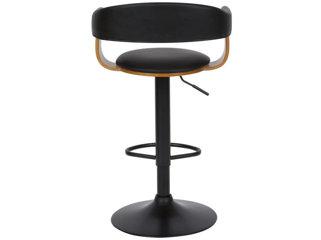 Superbe avec sa structure en PU noir et bois plaqué noyer, notre chaise de bar noire Harold avec accoudoirs repose sur un pied en métal Ø41 cm à la fois discret et lumineux. Conçue pour un confort total, elle vous charmera par son dossier enveloppant et le moelleux de son assise.