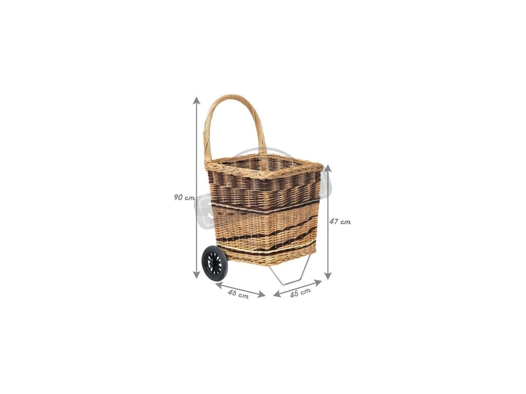 Chariot à bûches en osier bicolore sur roulettes
