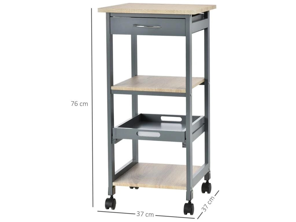 – Desserte multi-rangements : 2 étagères + plateau amovible + tiroir + plateau supérieur/plan de travail