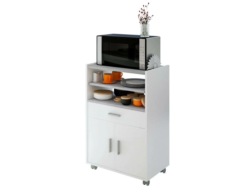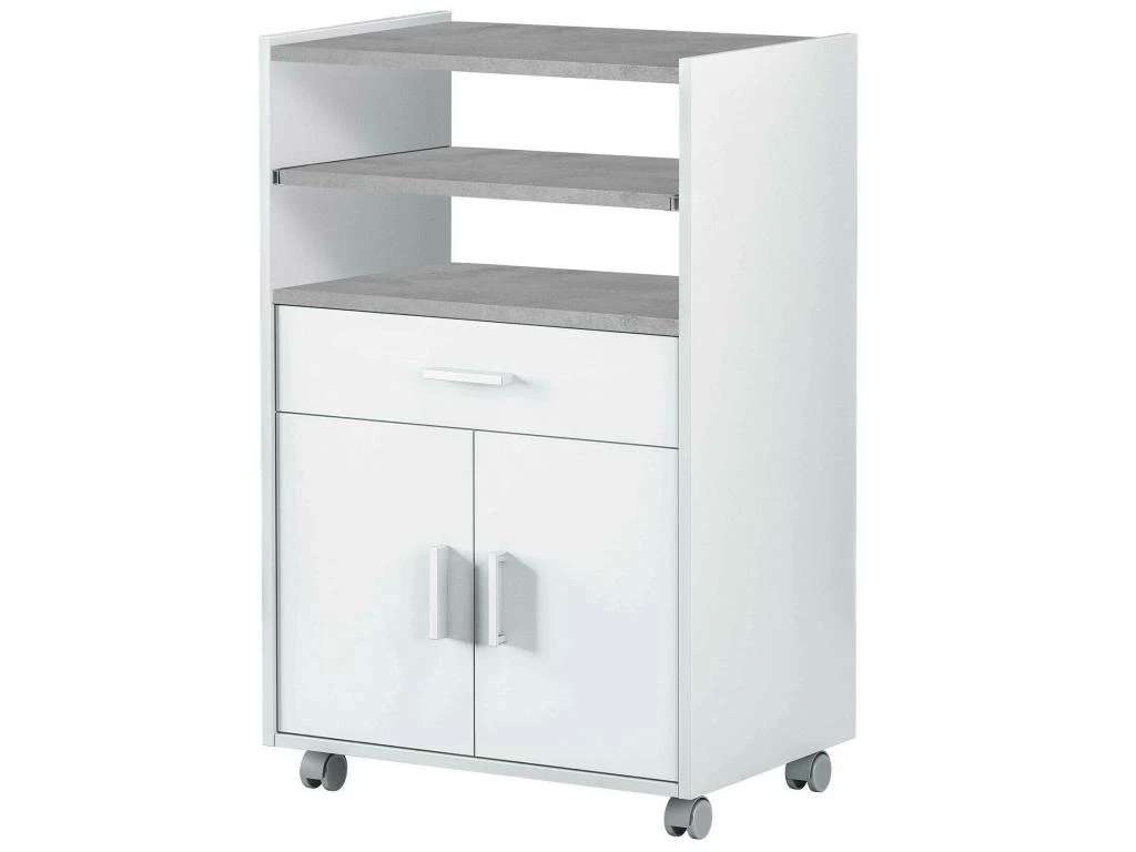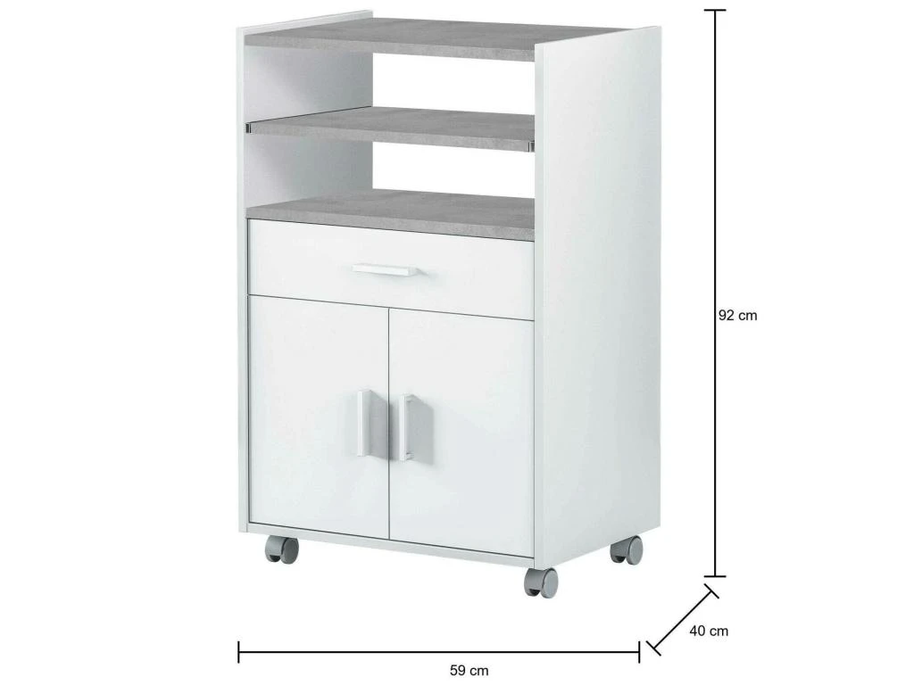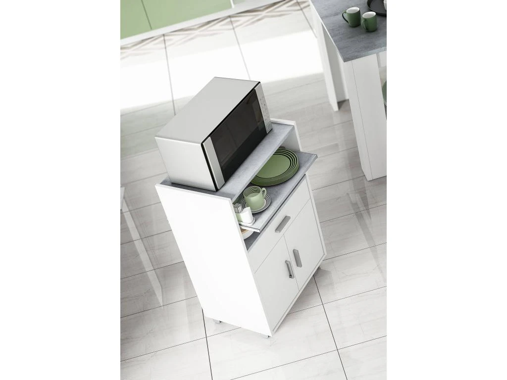 STRUCTURE ET UTILISATION – Meuble de cuisine polyvalent sur roulettes, structuré avec deux portes battantes, un tiroir et une étagère amovible – Meuble peu encombrant parfait à positionner comme support mobile dans la cuisine, à l’intérieur il est possible de ranger des aliments, de la vaisselle, des casseroles et des ustensiles de cuisine sur l’étagère au-dessus, il est possible de placer un four à micro-ondes – Composant essentiel, ce meuble permet d’organiser efficacement les objets et de garder la cuisine propre et bien rangée.