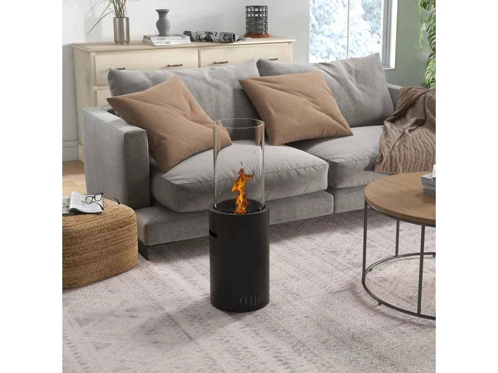 – Poêle bioéthanol équipé d’un brûleur 0,3 L soit une durée de combustion de 2 heures env.