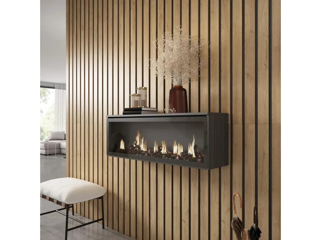 Cheminée électrique à LED. Dimensions: 107 cm de large, 32 cm de haut. Effet de feu 3D incroyablement réaliste. Aucun risque de brûlure car elle n’intègre aucune source de chaleur. Puissance: 34w.