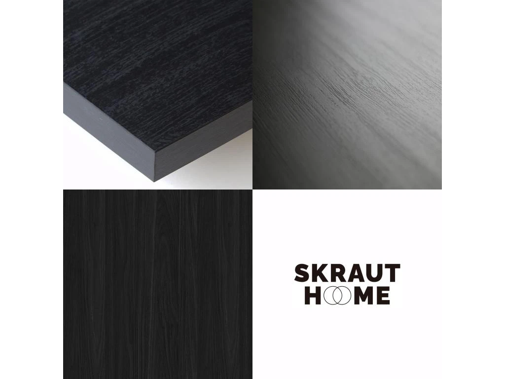 Dimensions du module: 107 cm de largeur, 38 cm de hauteur, 24 cm de profondeur. Couleur noir avec un veinage du bois poreux au touché de haute qualité.