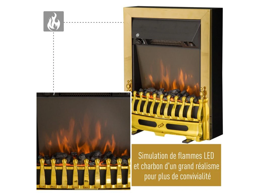 – Effet lumineux flammes/braises et chauffage peuvent être utilisés séparément