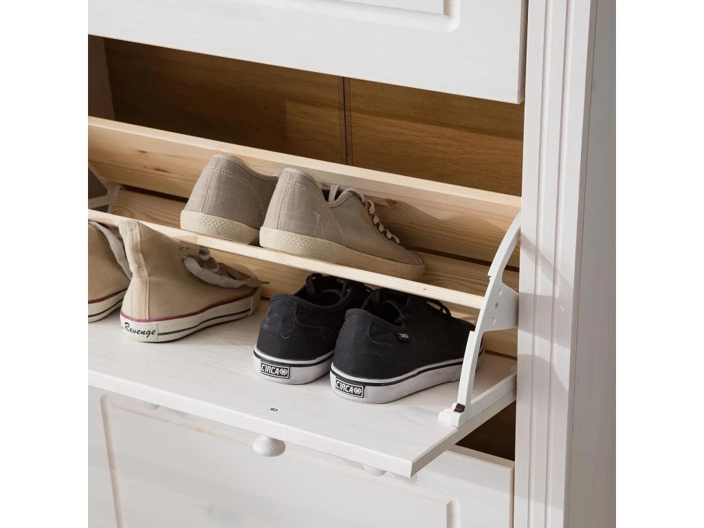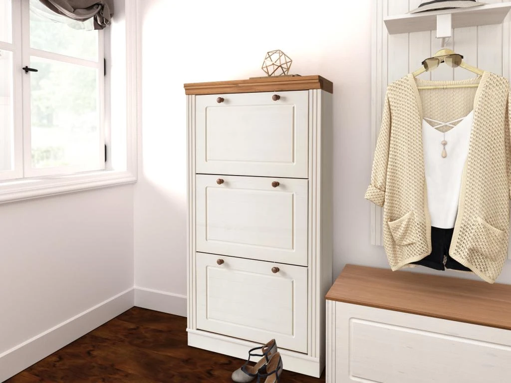 Ce coffre à chaussures en pin à 3 rabats est le complément parfait à toute entrée ou placard. Les tons riches et chaleureux du bois de pin créent un aspect naturel et rustique qui complète tout style de décor. Avec trois rabats qui s’ouvrent pour révéler un grand espace de rangement, ce coffre à chaussures est parfait pour organiser et ranger les chaussures, gardant votre espace propre et bien rangé. La construction robuste et les matériaux de qualité utilisés pour créer ce coffre à chaussures garantissent une durabilité durable, garantissant qu’il sera un meuble précieux dans votre maison pour les années à venir. Que vous recherchiez une solution de rangement fonctionnelle ou un accent décoratif pour votre maison, ce coffre à chaussures en pin à 3 rabats est une option polyvalente et magnifique.