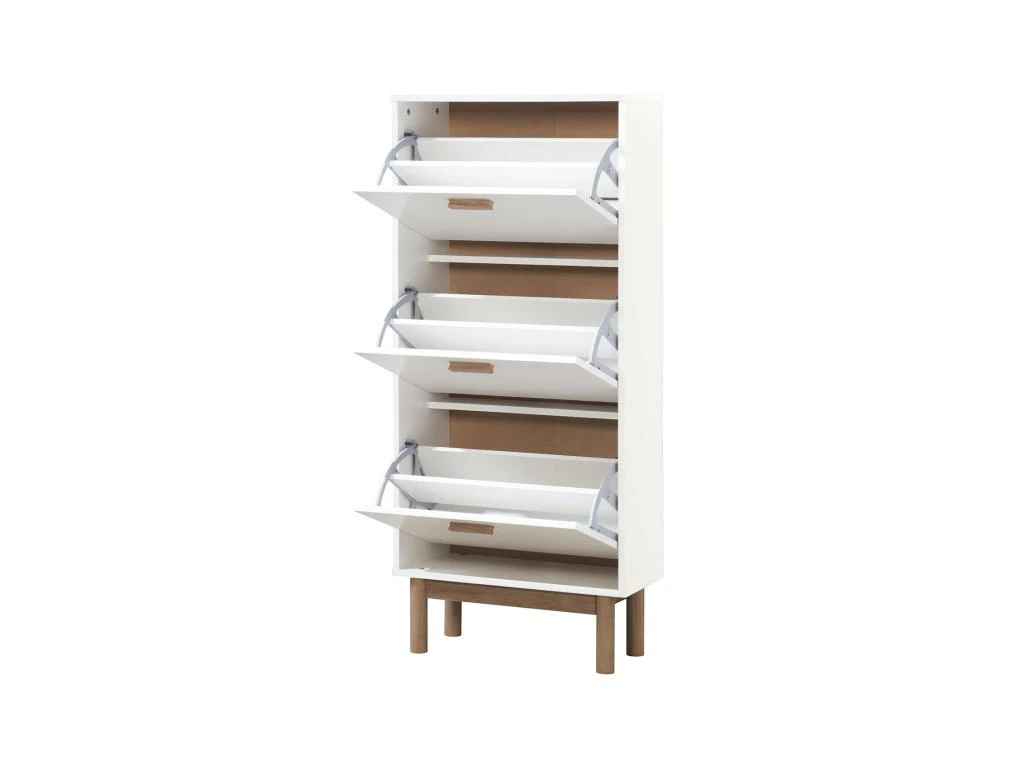Le coffre à chaussures Melanie est un meuble pratique et élégant qui vous aidera à organiser vos chaussures. Le coffre à chaussures est fabriqué à partir de MDF recouvert d’une feuille, un matériau lisse et brillant, facile à nettoyer et à entretenir. Le coffre à chaussures a trois rabats qui s’ouvrent pour révéler des compartiments spacieux qui peuvent ranger vos chaussures proprement et commodément. Le coffre à chaussures a des pieds en bois qui ajoutent de la stabilité et du style. Le coffre à chaussures Melanie a un design élégant et moderne qui conviendra à n’importe quel décor. Le coffre à chaussures Melanie est un excellent moyen de garder vos chaussures en ordre et à portée de main.