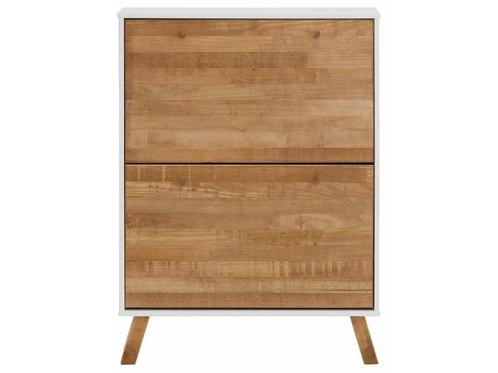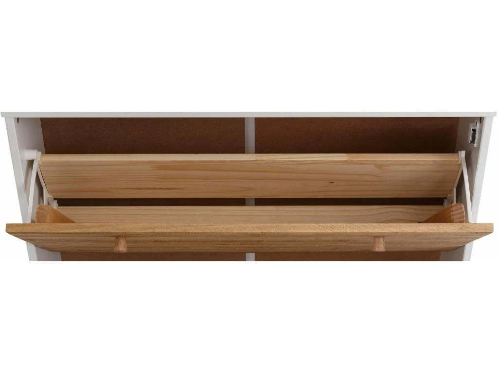 L’armoire à chaussures est dotée de 2 rabats d’ouverture pour chaussures derrière lesquels vous pouvez maximiser votre espace et ranger 6 à 8 chaussures. Il donne un look shabby au style country. Ce modèle est composé de bois massif de pin certifié FSC® et de matériaux à base de bois.