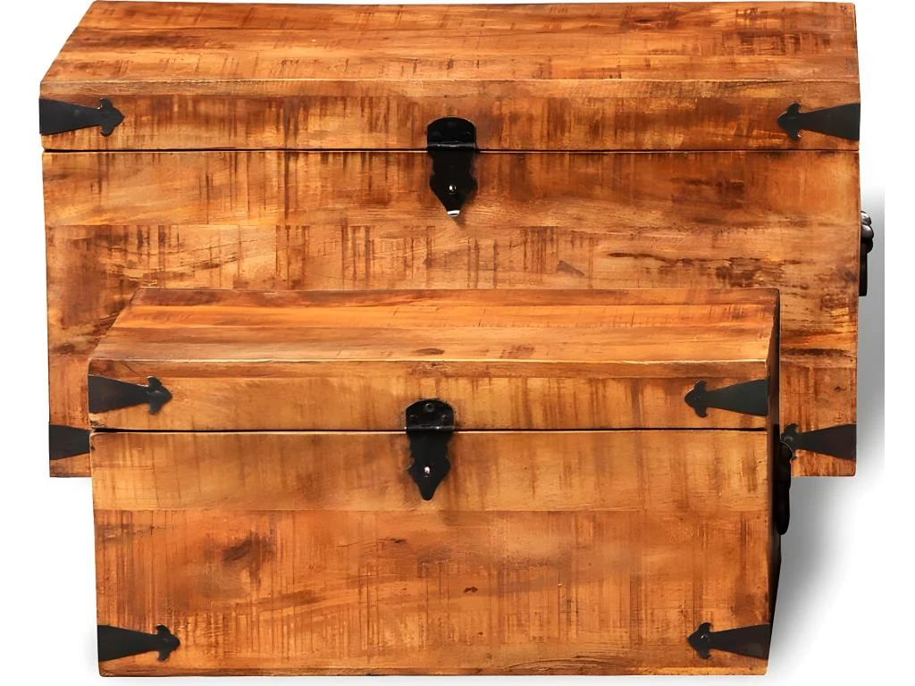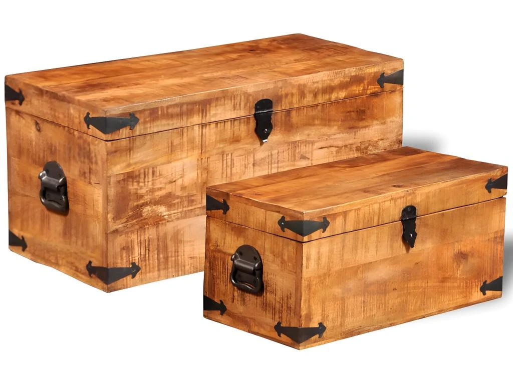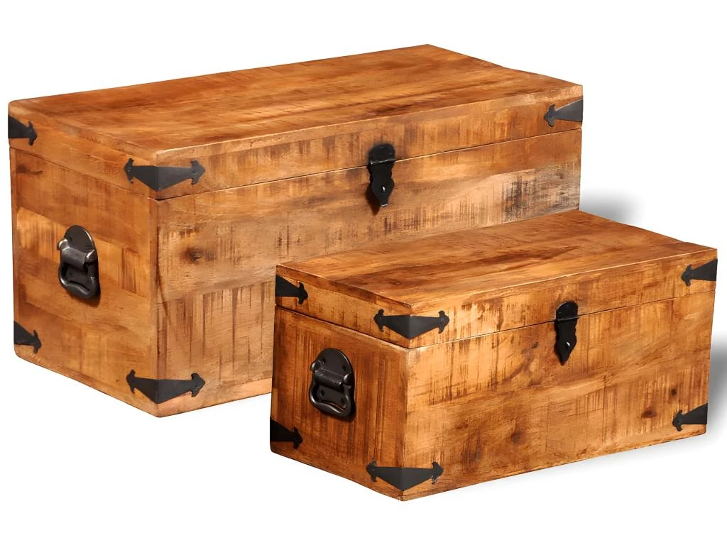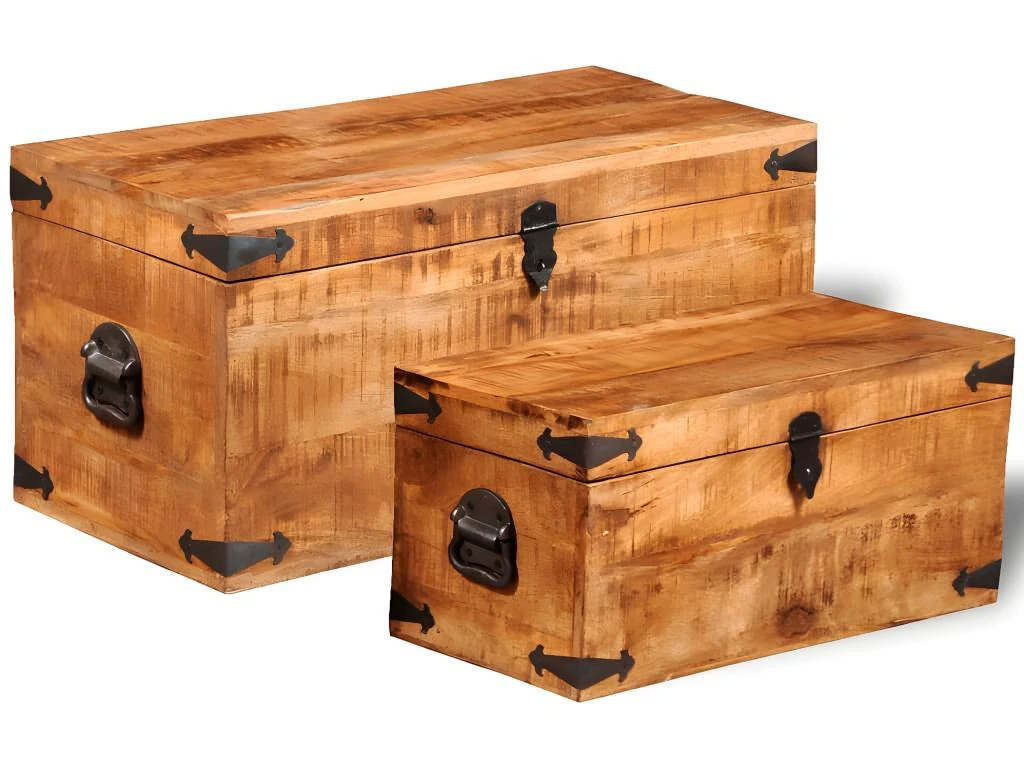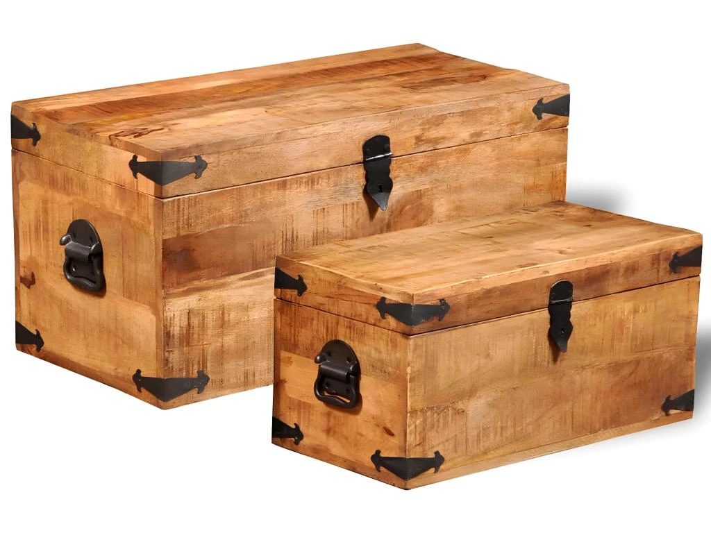 Cet ensemble de 2 coffres de rangement en bois de manguier brut, un accessoire intemporel pour votre maison, vous donnera amplement d’espace de rangement et vous aidera à garder vos affaires en ordre.