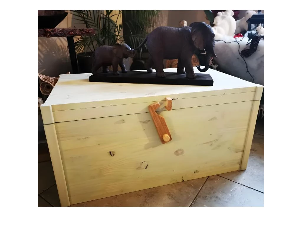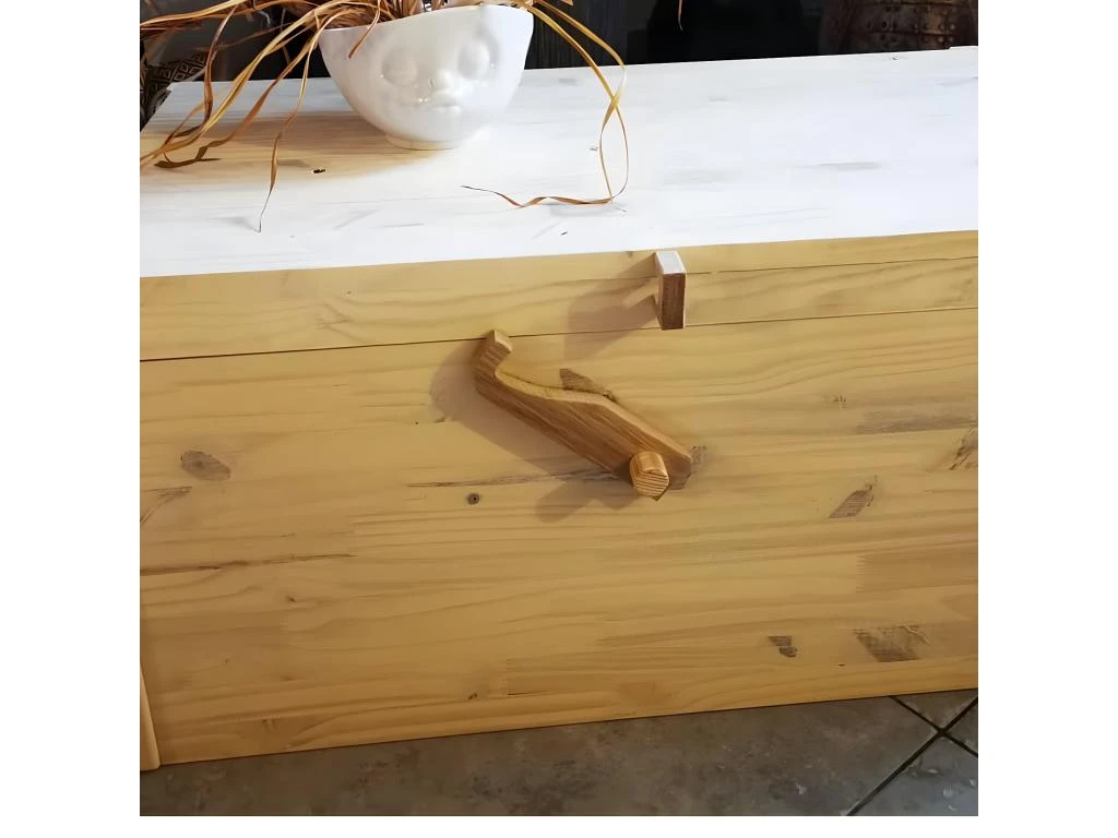 Coffre en bois de pin lasuré blanc Fabriqué en France Fait main, Bois de pin Poignées en bois Dim : 45 x 35.5 x 71 cm