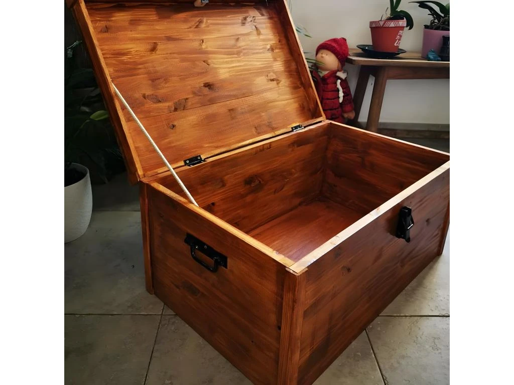 Coffre en bois de pin teinté teck Fait main Poignées en métal Dim : 45 x 35.5 x 71 cm Bois de pin