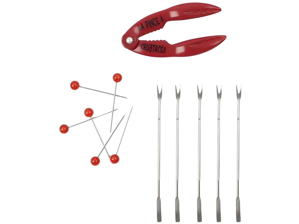 Composition : 1 pince + 6 piques + 6 fourchettes
