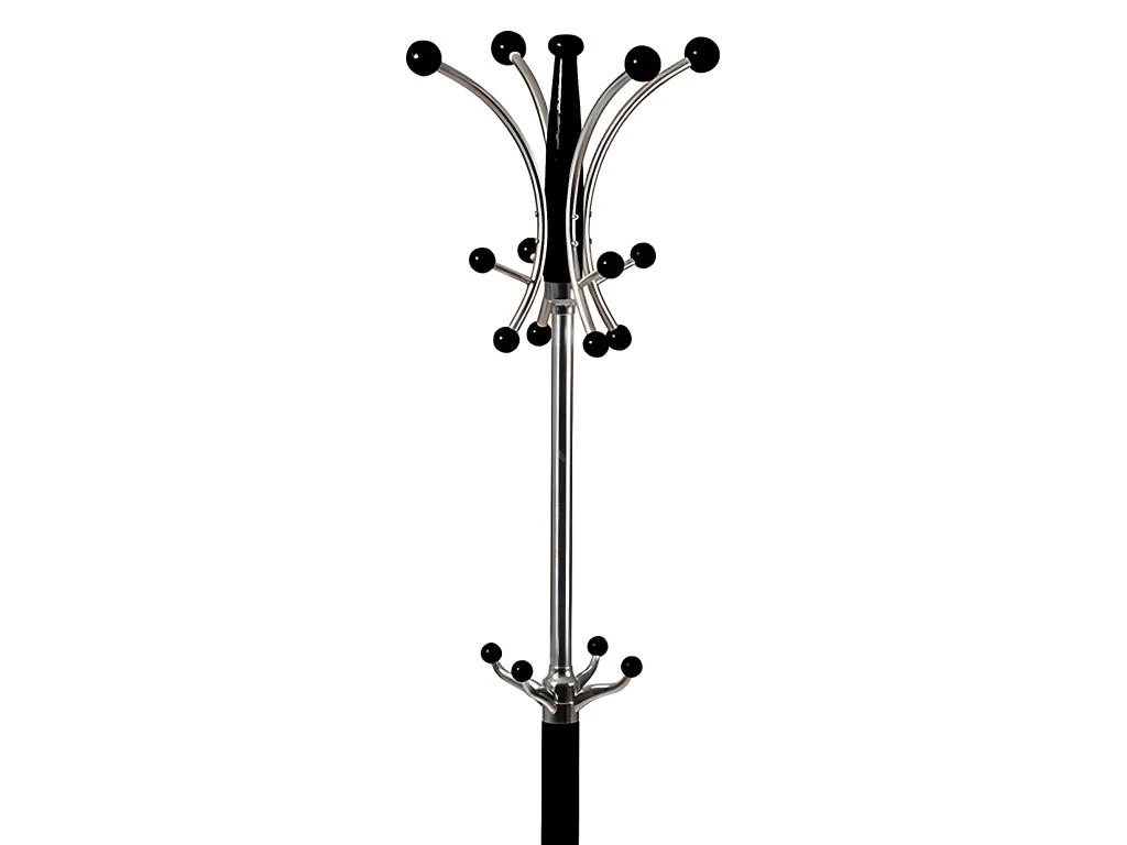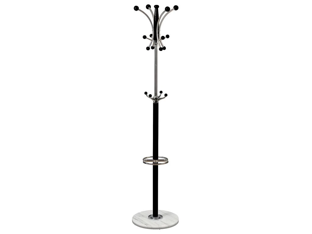 Socle en marbre, structure chromée. Fût en aniégré laqué et patères en fer chromé. Porte parapluie en plastique