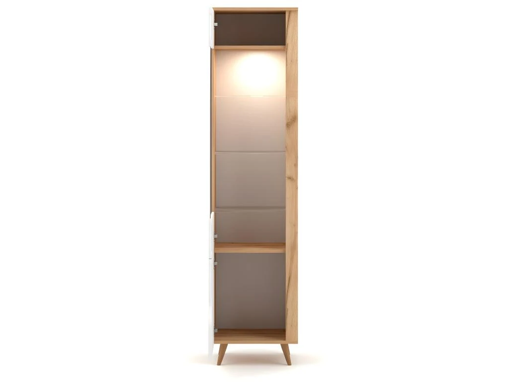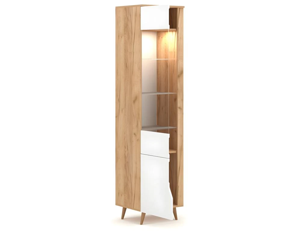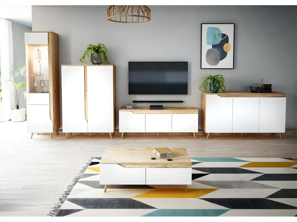 Son mélange de ton bois clair et blanc, ses lignes épurées et ses pieds bois esprit nordique donne à l’ensemble un style naturel prononcé qui s’intégrera aisément dans des décors aux tons doux et chaleureux.